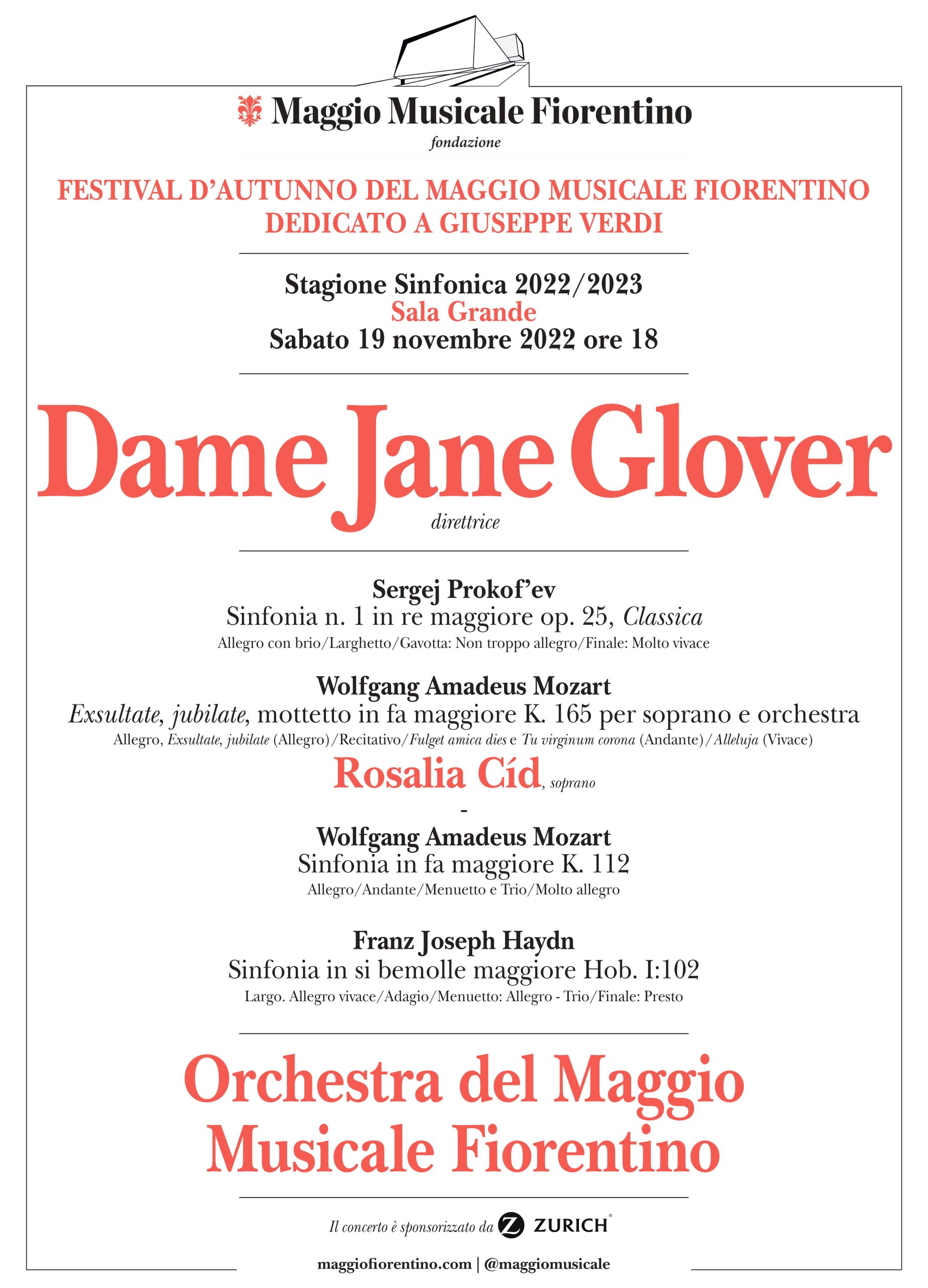 We inform the kind public that the symphonic concert conducted by Dame Jane Glover, scheduled for November 12 at 6 pm, has been moved from the Mehta hall to the great hall of the Teatro del Maggio.