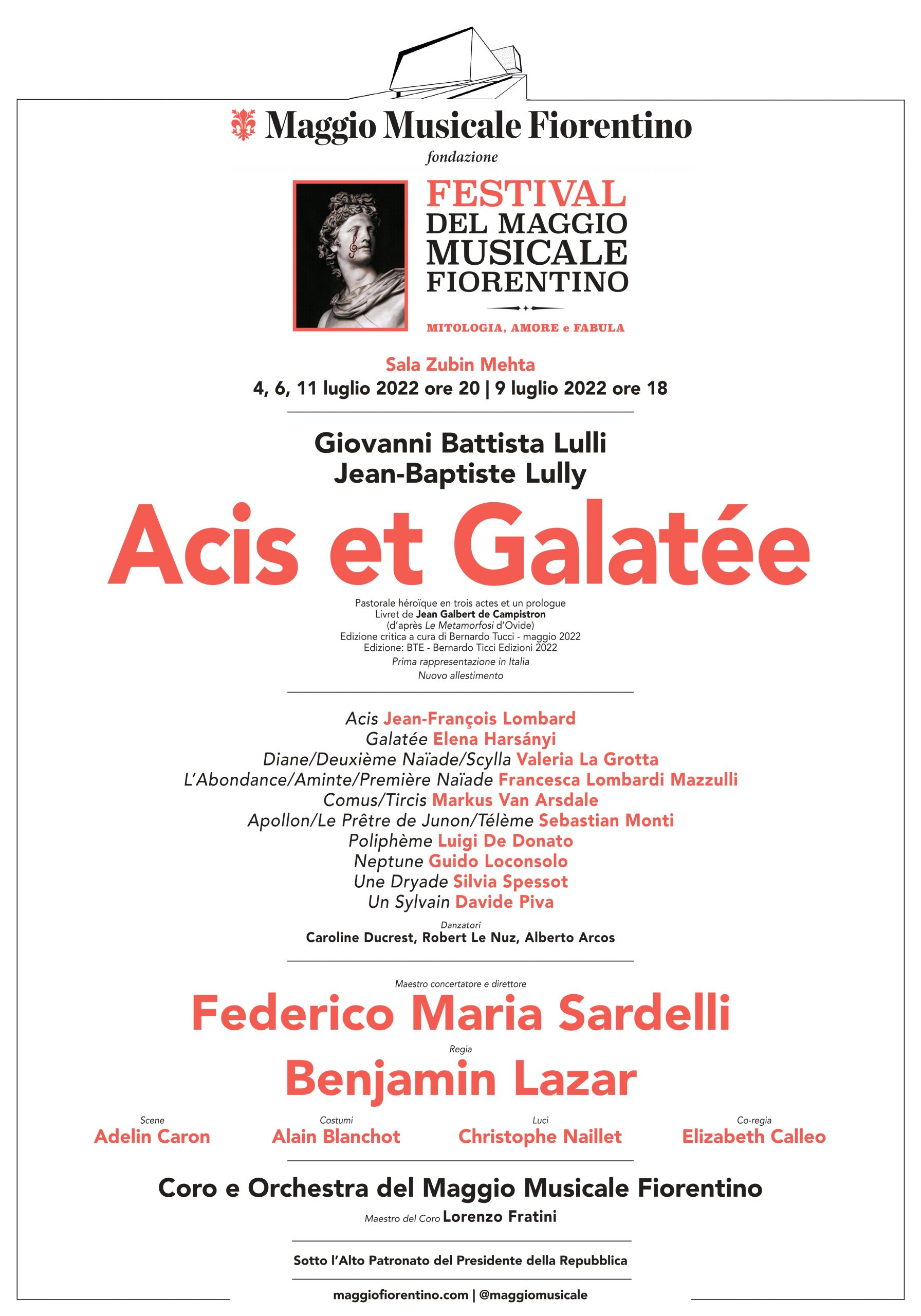 Ultima opera in cartellone dell’84 esimo Festival del Maggio Musicale e anche questa mai rappresentata al Maggio e a Firenze. La direzione è affidata a Federico Maria Sardelli, la regia a Benjamin Lazar. Le scene sono di Adeline Caron, i costumi di Alain Naillet, la coreografia è di Gudrun Skamletz. Acis et Galatée,opera in tre atti più prologo su libretto di Jean Galbert de Campistron, è l’ultimo lavoro compiuto di Jean-BaptisteLully. Dopo decenni dedicati alla tragédie lyrique, genere da lui stesso inaugurato, nel 1686 Lully concludeva la sua lunga carriera teatrale con una pastorale-héroïque, un genere intermedio che combinava sulla scena personaggi divini e mortali, nobili e pastori, commissionatagli dal duca di Vendôme per omaggiare il Delfino di Francia ospite nel castello di Anet. ll libretto è ispirato alla leggenda di Aci e Galatea descritta nel libro XIII delle Metamorfosi di Ovidio. Il pastore Aci ama, ricambiato, la ninfa delle acque Galatea, ma anche il mostruoso ciclope Polifemo ama la ninfa e vedendosi respinto uccide per gelosia Aci, schiacciandolo sotto una roccia. Tuttavia, grazie all’intervento del dio Nettuno, Aci sarà riportato in vita e trasformato in un fiume. Pur cimentandosi con un genere minore, che si articola in soli tre atti rispetto ai canonici cinque delle tragédies lyriquese prevede un numero inferiore di numeri musicali,Lully non rinuncia al tono aulico che caratterizza tutta la sua produzione maggiore. In Acis et Galatée la declamazione è sempre estremamente curata e attenta a ogni inflessione del verso così come la musica, che possiede i medesimi toni sontuosi e imponenti delle grandi tragédies. Per tali ragioni l’opera riscosse fin dall’esordio il plauso del pubblico, entrando di diritto della storia del teatro musicale francese.