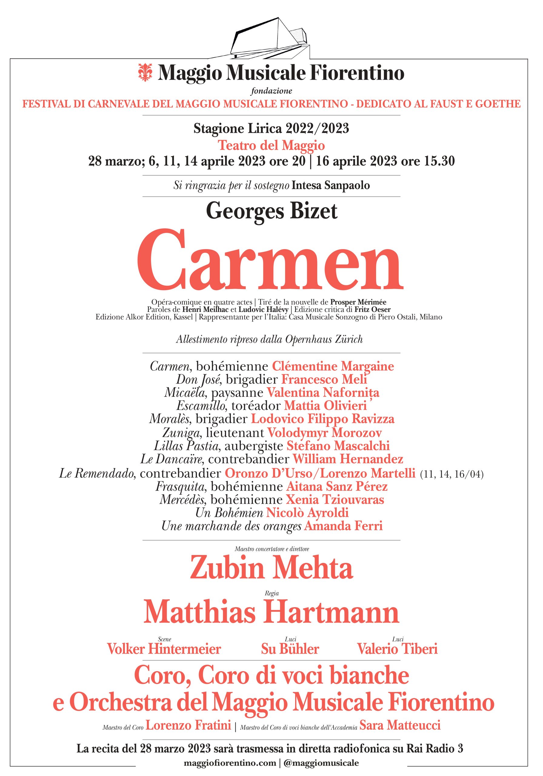 Coro, Coro delle voci bianche dell'Accademia e Orchestra del Maggio Musicale Fiorentino Maestro del Coro Lorenzo Fratini Maestro del Coro di voci bianche dell'Accademia Sara Matteucci