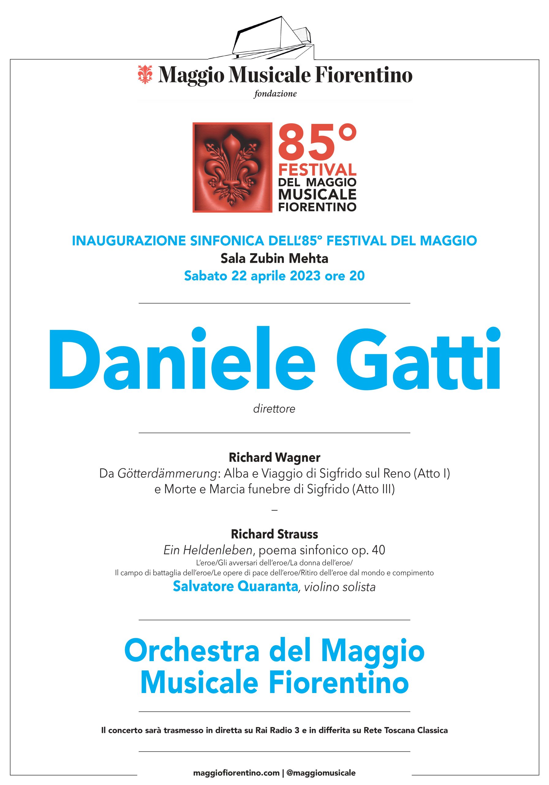 Il concerto sarà trasmesso in diretta su Rai Radio 3 e in differita su Rete Toscana Classica