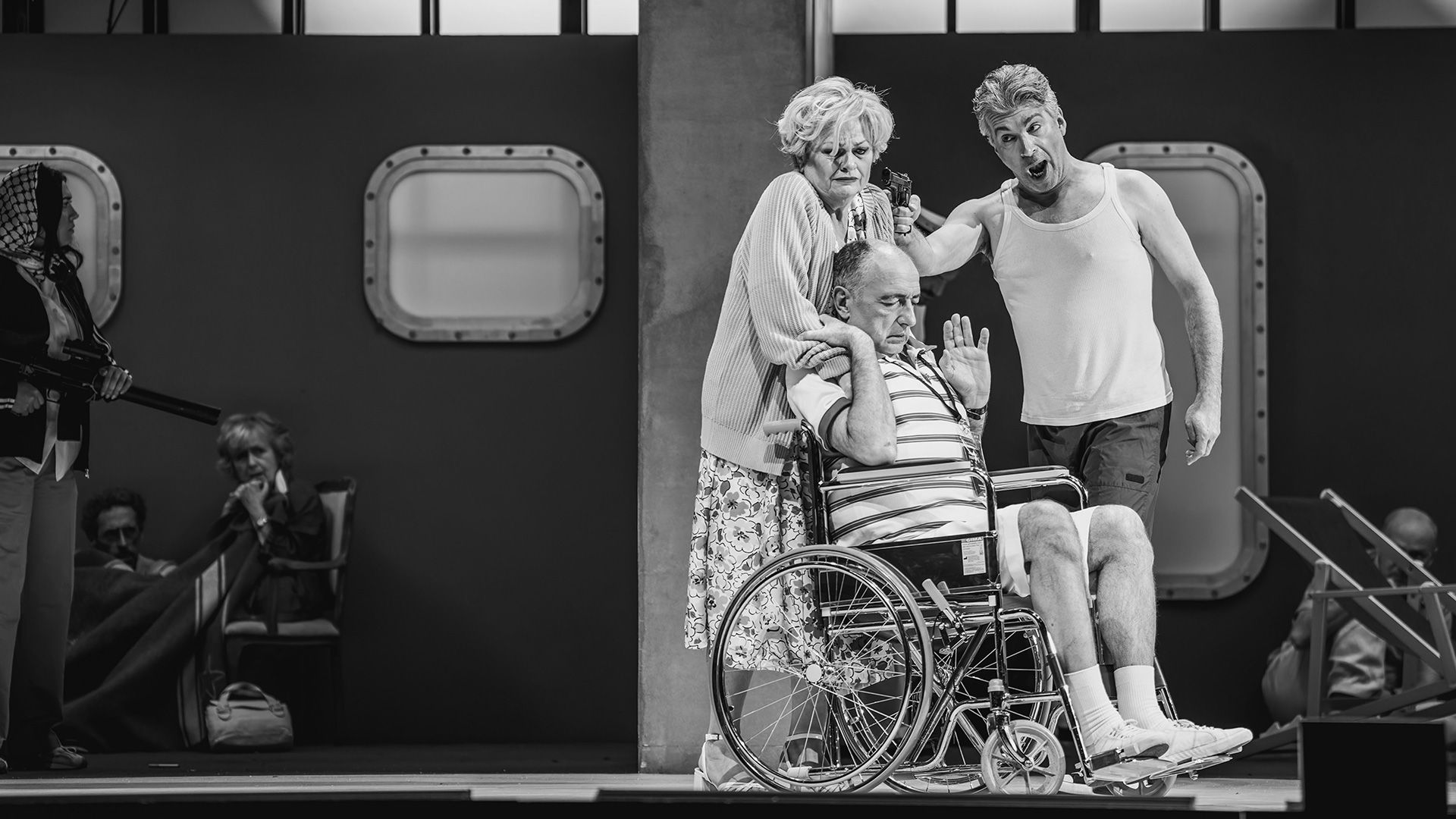 The Death of Klinghoffer è un’opera in un prologo e due atti del compositore John Adams su libretto della poetessa Alice Goodman, andata in scena per la prima volta a Bruxelles al Teatro de la Monnaie nel 1991. In Italia è stata rappresentata solo nel 2002 a Ferrara e a Modena. L’opera prende spunto dal clamoroso fatto di cronaca dell’ottobre 1985: il sequestro e dirottamento della nave italiana da crociera Achille Lauro da parte di terroristi del Fronte per la liberazione della Palestina. La vicenda, che calamitò l’attenzione di tutto il mondo, si concluse con l’assassinio di uno dei passeggeri, Leonard Klinghoffer, cittadino statunitense di religione ebraica, costretto su una sedia a rotelle, e il cui corpo fu poi gettato in mare dai terroristi.